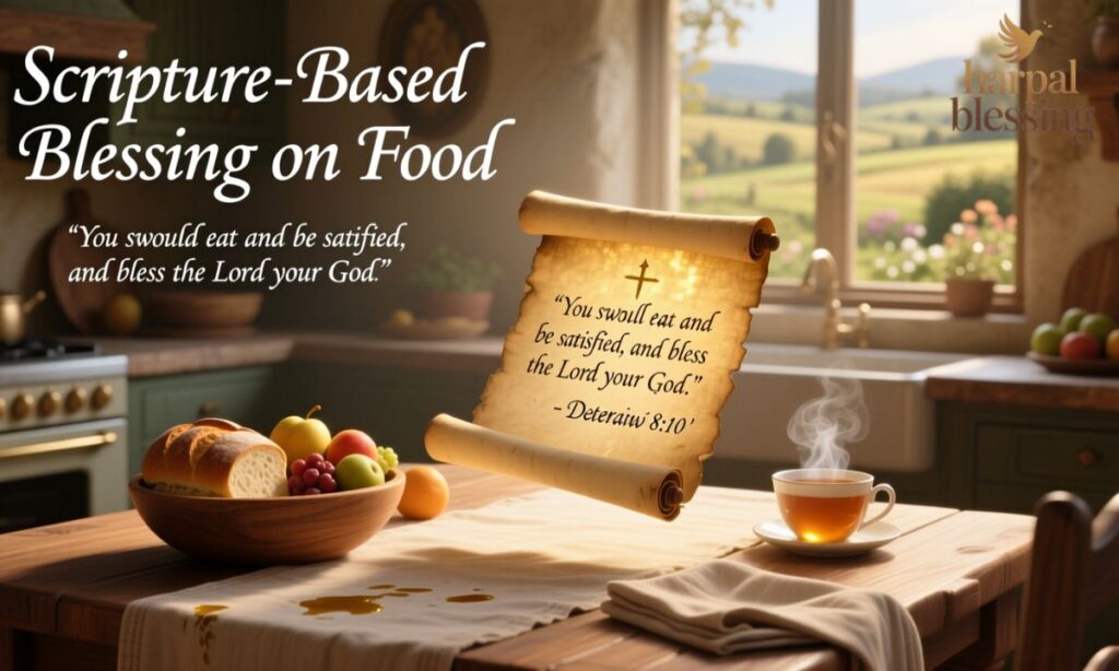 Bible verses about food blessings such as Matthew 14:19 and 1 Timothy 4:4–5 (KJV) inspire short prayers for food blessings with gratitude and faith.